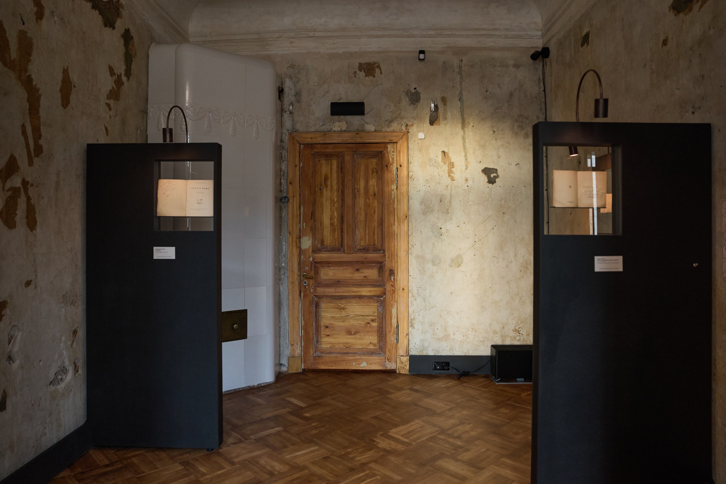Таких квартир, как на Съезжинской, полон Петербург: за парадными фасадами идет разрушение и увядание. Кто-то, безусловно, скажет – рухлядь, тоска. Понятно в целом и желание закрыть толстым слоем штукатурки или гипрока то, что напоминает о конечности всего земного. Но путь создателей музея был другим: за отсутствием большого количества материального наследия, нужно сохранить хотя бы нематериальное – дух, следы, веяния. В этом в целом заключается сложность всех литературных музеев – что и как показывать, если главное – не предмет?Сергей Мишин выступил не как архитектор, а как документалист: главным методом работы с пространством стала жесткая научная консервация, проведенная по всем золотым стандартам Венецианской хартии – крайне редкий даже для Петербурга подход.